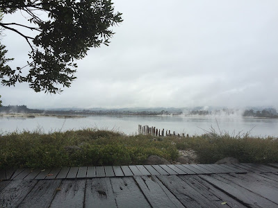 My NZ host, Grace, and I drove from Auckland to Rotorua on the way to her daughter’s in Napier (Hawke’s Bay) further south. In Rotorua, we stayed at the Ibis Hotel, where the manager rolled out the red carpet for us, upgrading our room to a lake view, throwing in a free breakfast, and then, when he heard about World Piece, he treated us to a free dinner buffet at the Novotel next door. That is some impressive Kiwi hospitality!