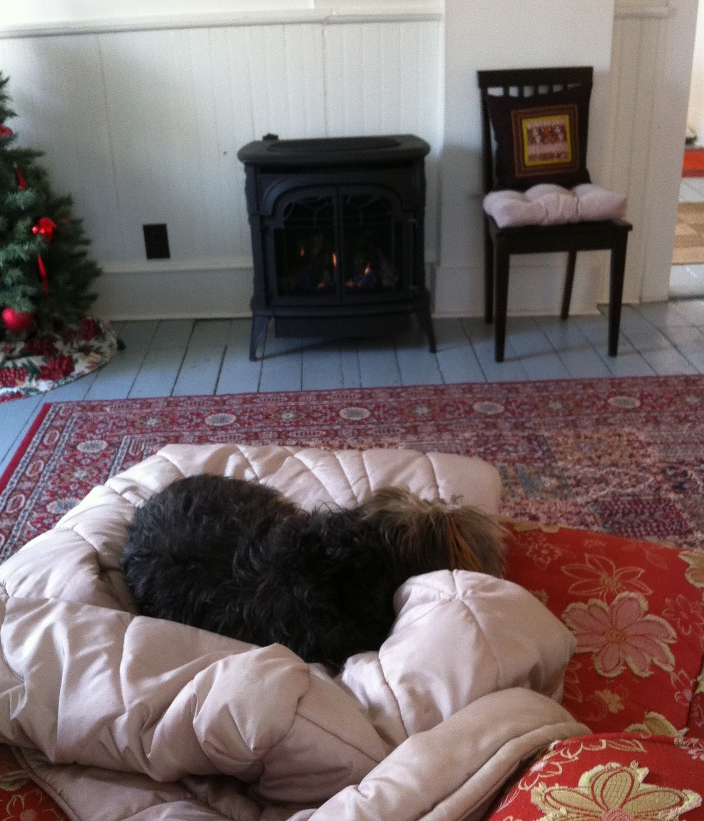 With my new stove, my fingers don’t get cold when I type at my computer for hours on end. And it gets so hot upstairs in my bedroom, I don’t miss having a man next to me. (Okay, I admit, that’s not completely true.) I’ve also noticed my two terriers are spending more time in my office with me, taking longer naps. In front of the stove.