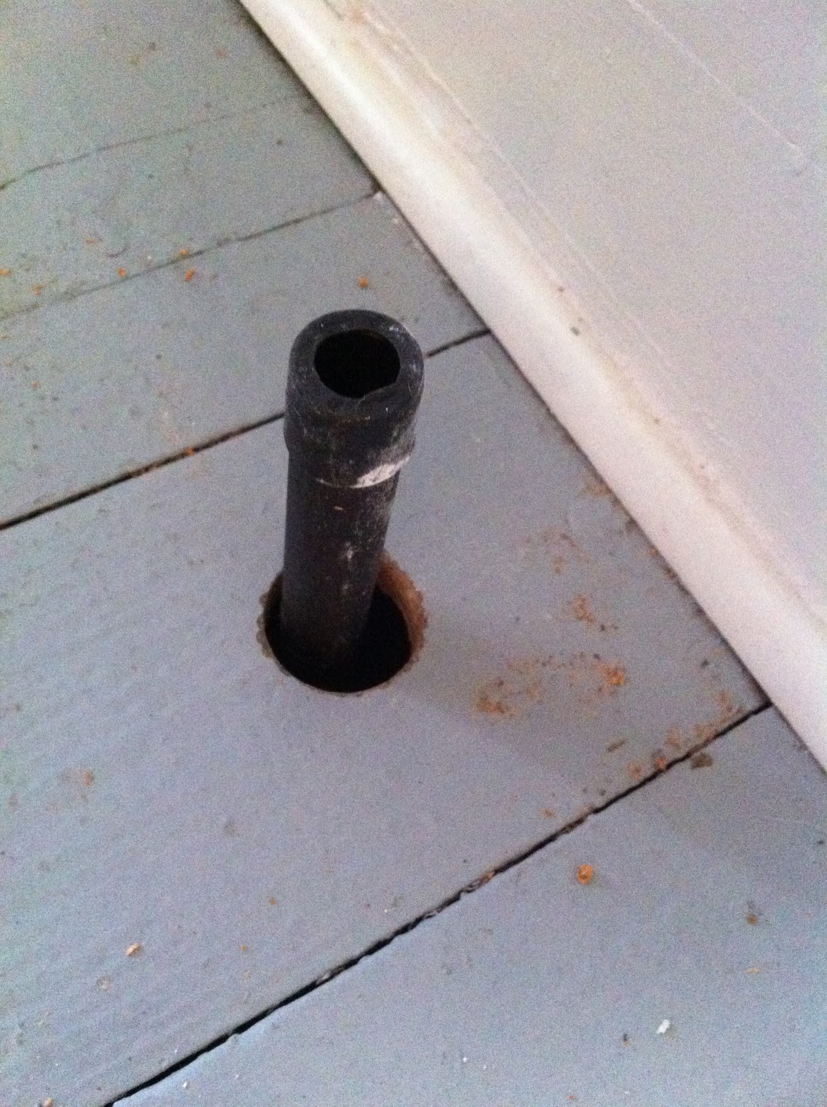 One little catch (two if you count having to ask my landlord for permission) is that they had to drill a little hole in the original wood plank floor of the house to run a gas line up from the basement. To watch them removing the inch-wide round plug of wood — a piece of American history! — made my hackles go up. They might has well have been using white-out on the Declaration of Independence. Or giving the Statue of Liberty a nose job. (Though as far as I know, both of things might have actually been done.) But once the blue and yellow flames sprung to life and the heat started permeating the drafty old house, I didn’t give another thought to tampering with a national historic site.