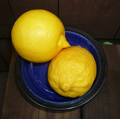 At last! I returned from Mexico and got a lasting taste of tropical sun with the delivery of my ceramic bowl — filled with luscious lemons. The fruit was hand-picked in Palm Springs, California and smuggled across the Oregon border by my neighbor. Though, come to think of it, bringing fruit out of California is okay, it’s just forbidden to bring it in. “We don’t want your backyard fruit flies,” the Californians say. “Yeah? Well, we don’t want YOU,” the Oregonians have been known to retort in response to the swarms of human population moving north.