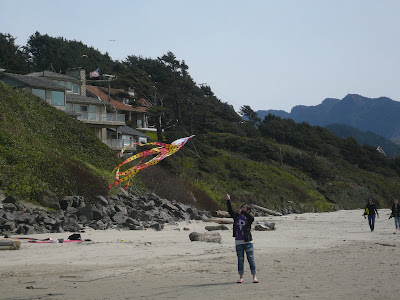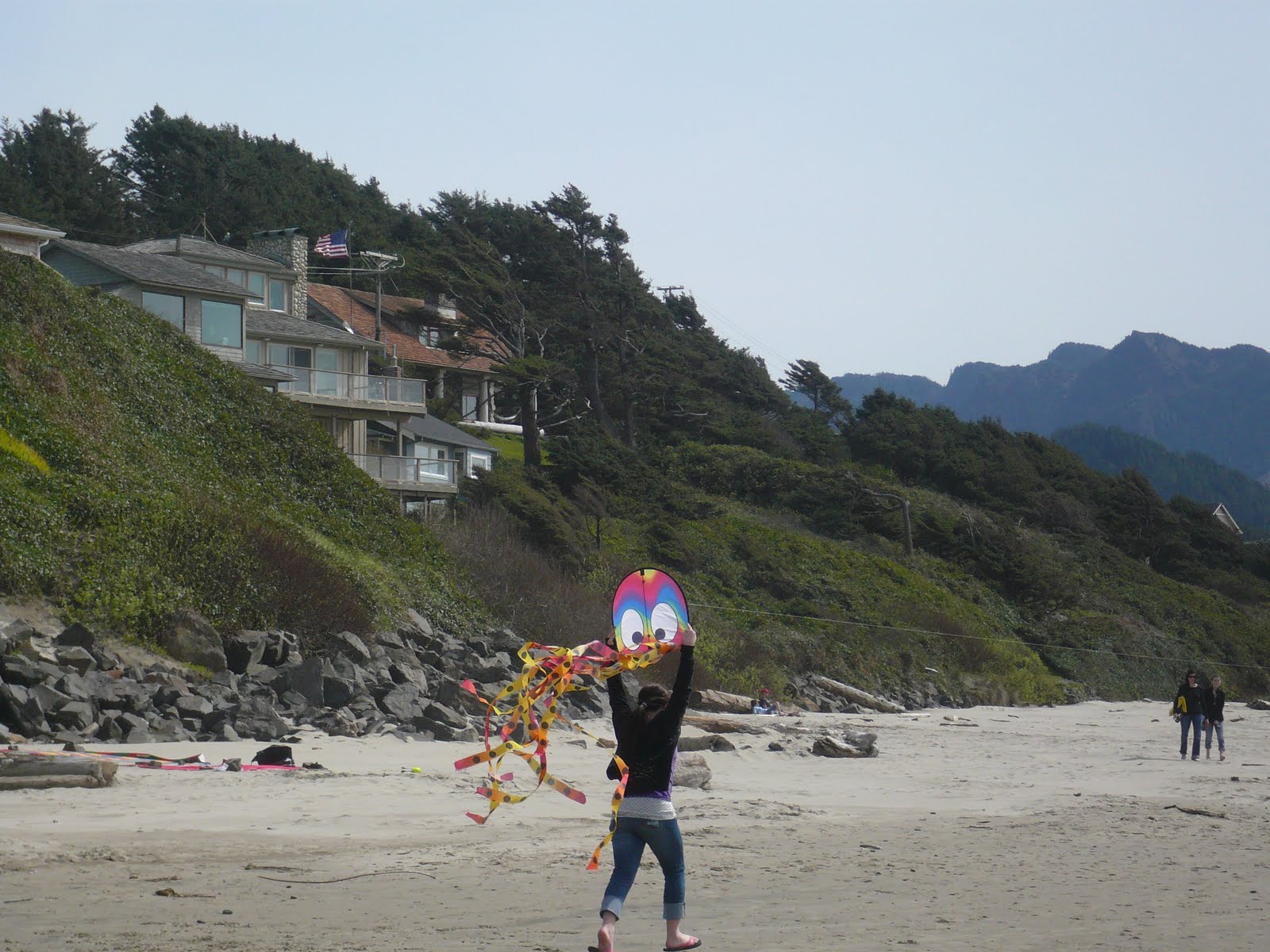 Once upon a rare, sunny Oregon day, a girl called Pie packed up her Mini Cooper and drove to the coast. Forget that the rhubarb Sylvia picked from her garden was still sitting in her refrigerator longing to be baked into a pie. The sky was blue! The beach beckoned! So off she went — vroom, vroom — with her two terriers in tow. She was not disappointed, rather she was reminded there are other joys in life besides baking pie — like feeling the wind in her face, like watching kids fly kites. And they all lived happily ever after. With suntans. And sand on the leather car seats. The End.