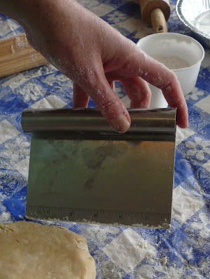 I opened my Pitchfork Pie Stand at the American Gothic House two and a half weeks ago and have been reminded that making pie in large volumes requires more than my usual two tools of a rolling pin and a mixing bowl. I have also discovered some new, indispensable items…some you can purchase, some you cannot.