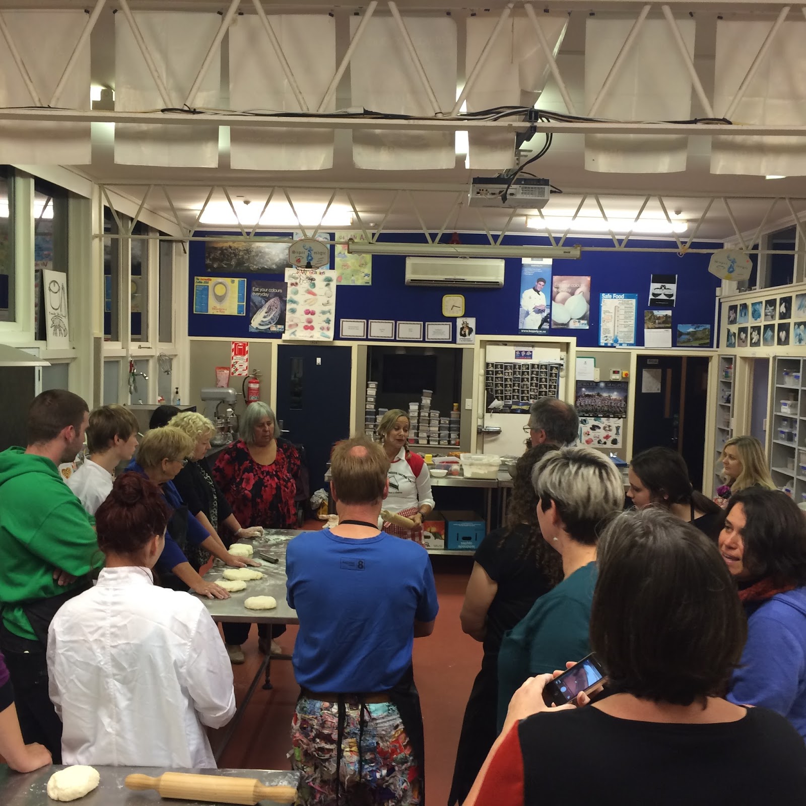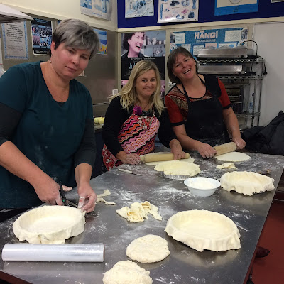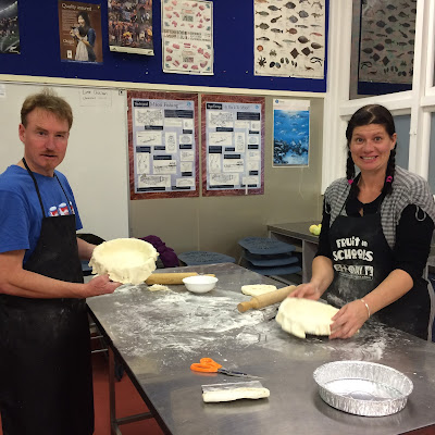 My first pie class of the World Piece tour was in Napier, New Zealand. Brett Zimmerman (aka Mr. Z), a friend of Louise Watts (my host Grace’s daughter), is a cooking teacher at a local college. (College in NZ is high school in US terms.)