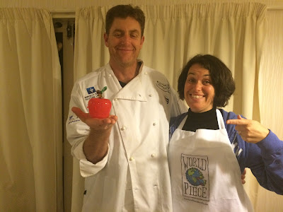 Before the class, Mr. Z used some of the apples to give me a lesson in knife-handling skills. We carved swans. He had worked in some fancy pants restaurant and they made these as a garnish, not to eat. He said he worked 14-hour days at that job. No wonder his days were so long! It takes a lot of time to create these carvings. It was fun to learn, but I prefer using apples for pie.