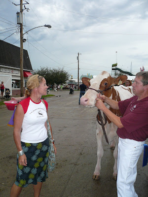Meet a cow. You could be innocently wandering around the fair grounds and run into cow traffic jam. The cows have to move from their barns to the show pavilion for their competitions. (Pie is not the only competitor here!) Accidentally step in some manure? Well, this is Iowa. Get used to it.