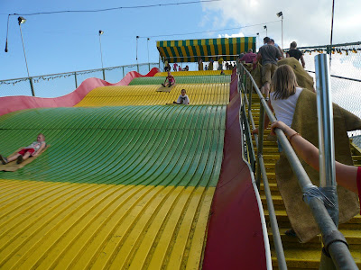 Go down the Giant Slide. This a state fair institution. For $2.50 you can climb 100 stairs, sit on a burlap sack, and cruise down the slide for a 10-second ride. Make sure you scream loud as the microphones placed at the mid-point project the sounds to the crowds below.