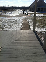 | My path. Instead of bare feet on a pink sand beach I leave boot prints on my snow-covered sidewalk. Fun times. |
