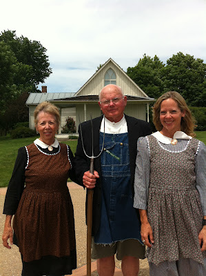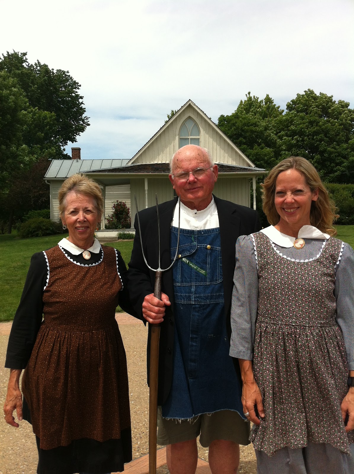 My mom and dad (with me above) moved to Los Angeles ten years ago and didn’t have much interest in leaving their ocean-view apartment for a return trip to Iowa. But I convinced them to come — by bribing them with airline tickets — and they were so glad for the experience. They loved the American Gothic House and its park-like setting and kept saying, “You just can’t describe this place. You have to see it for yourself.” They also said, “This is the cutest place you’ve ever lived.” And I’ve lived in a lot of cute places!