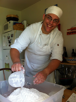 After my parents’ whirlwind 4-day visit (and my two round-trip drives to the Des Moines airport) I immediately shifted my focus to the Pitchfork Pie Stand. I ordered 600 pounds worth of pie ingredients, hired James Meek, a student at Indian Hills Community College’s Culinary School, and started in on pie production mode.