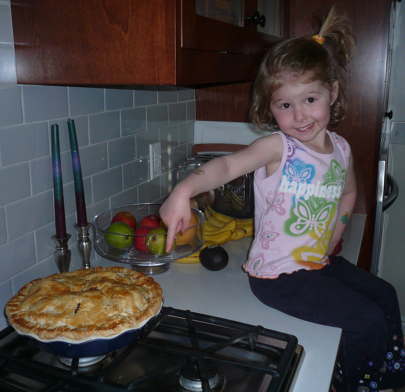 Then I went to my friend Matt’s house. I hadn’t seen him in about eight years (when he was still single) so it was a nice surprise to meet his wife and two kids — Sydney (4) and Dexter (2). I was blown away by the baking skill of his 4-year-old daughter. I was planning on having her make a mini-pie, but she tackled the Big Girl pie with gusto and the results were outstanding. The perfect Mother’s Day present for her proud mom Melissa. I told Matt that my afternoon baking pies with his kids was the best grief therapy I’ve had yet.