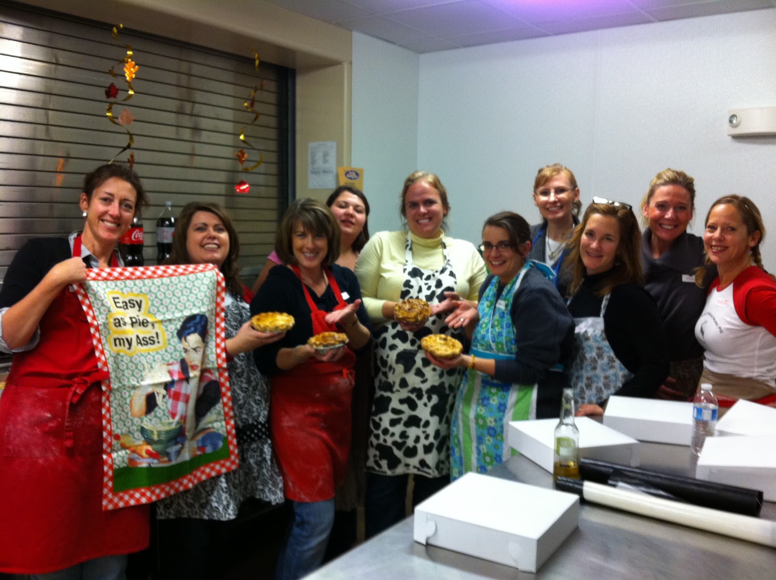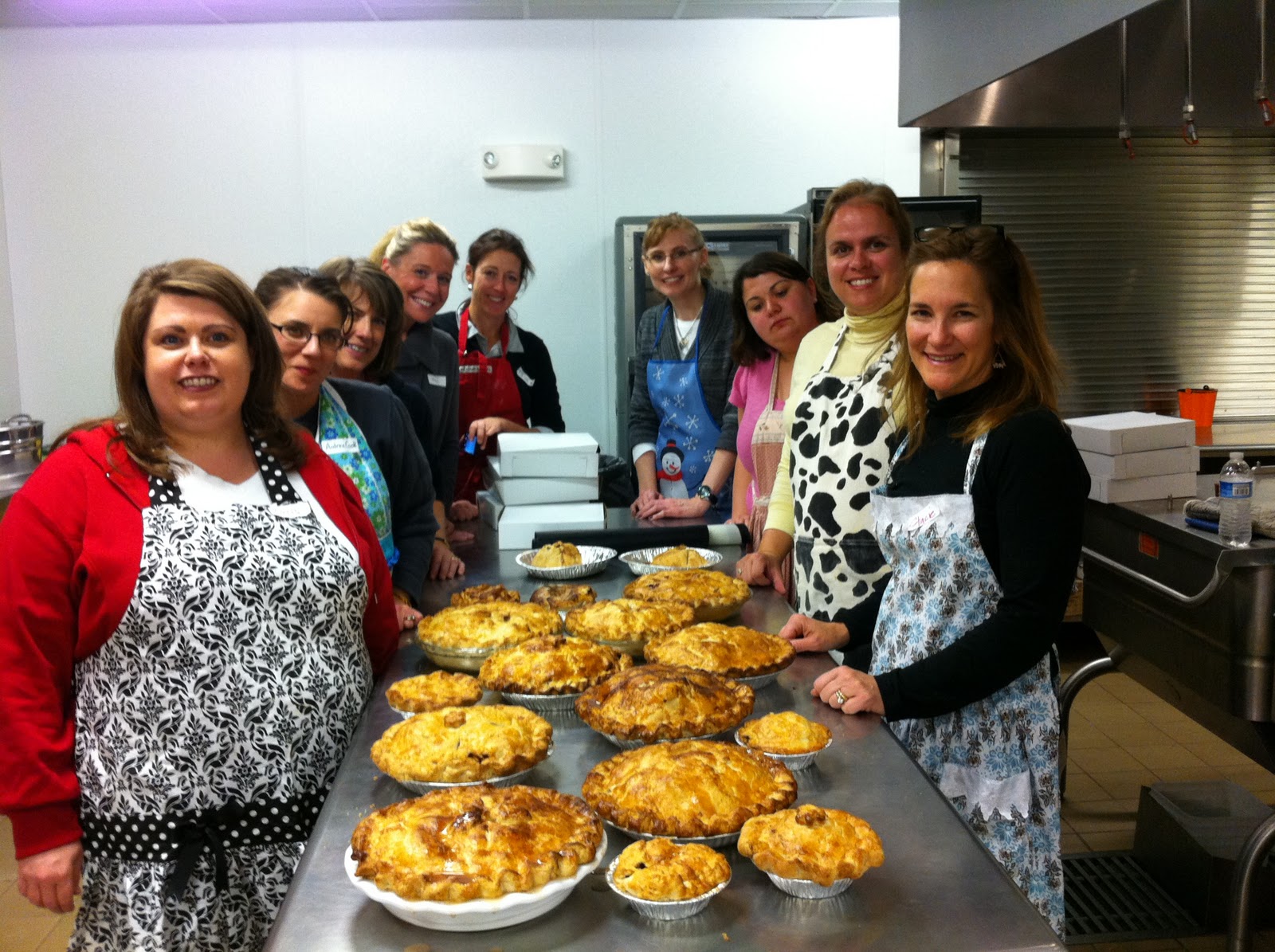 While the ladies (pictured above: Meg, Stacie, Jill and Katherine) were more than happy to have a night away from their kids, they also couldn’t wait to get home with their freshly baked pies. More so, it was the kids who were impatient. Their teen and pre-teen offspring sent text messages throughout the evening asking, “Is the pie ready yet? When are you coming home with the pie?”