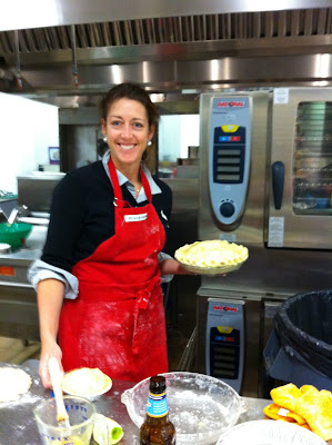 I don’t know which of the women actually gave the winning bid on the pie class, all I know is that Meg and I honed in on a date, Meg secured use of the school’s commercial kitchen (OMG, now I REALLY want a commercial kitchen for the Pitchfork Pie Stand!!!), Meg got 50 pounds of apples donated by fellow school parent Larry Lofreddo, I drove up from Eldon, and the rest, as they say, is history.