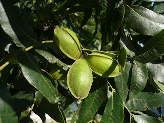 They’re growing. (Picture taken 5 Aug 08 in front of our house)When you have a pecan tree growing up through the middle of your house you begin to think about subjects previously ignored, like the care and feeding of a pecan tree. Or, for that matter, where pecans even come from, besides Trader Joe’s fruit and nut aisle. I’ve been doing some research and found this bit of history on the University of Arkansas website: