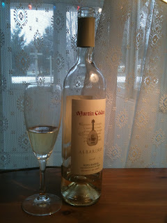 The bottle I am drinking is Martin Codax 2009 Rias Baixas. $12.99/bottle (online) and $16.99 (in stores). Available at grocery stores or http://www.budgetbottle.com/ and http://www.martincodaxwines.com/.