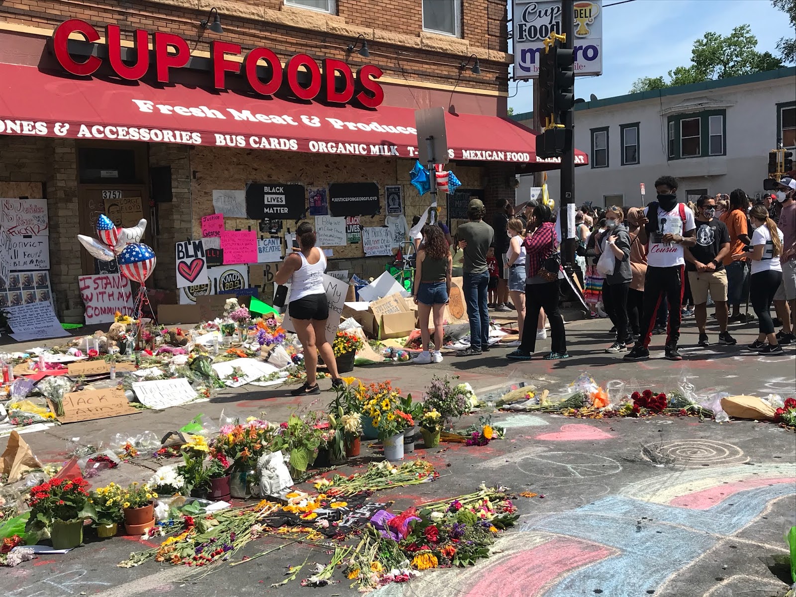 The streets were quiet at 9 a.m. on Sunday, though two blocks down I could see a small group had already gathered in front of Cup Foods to pay their respects to George Floyd.