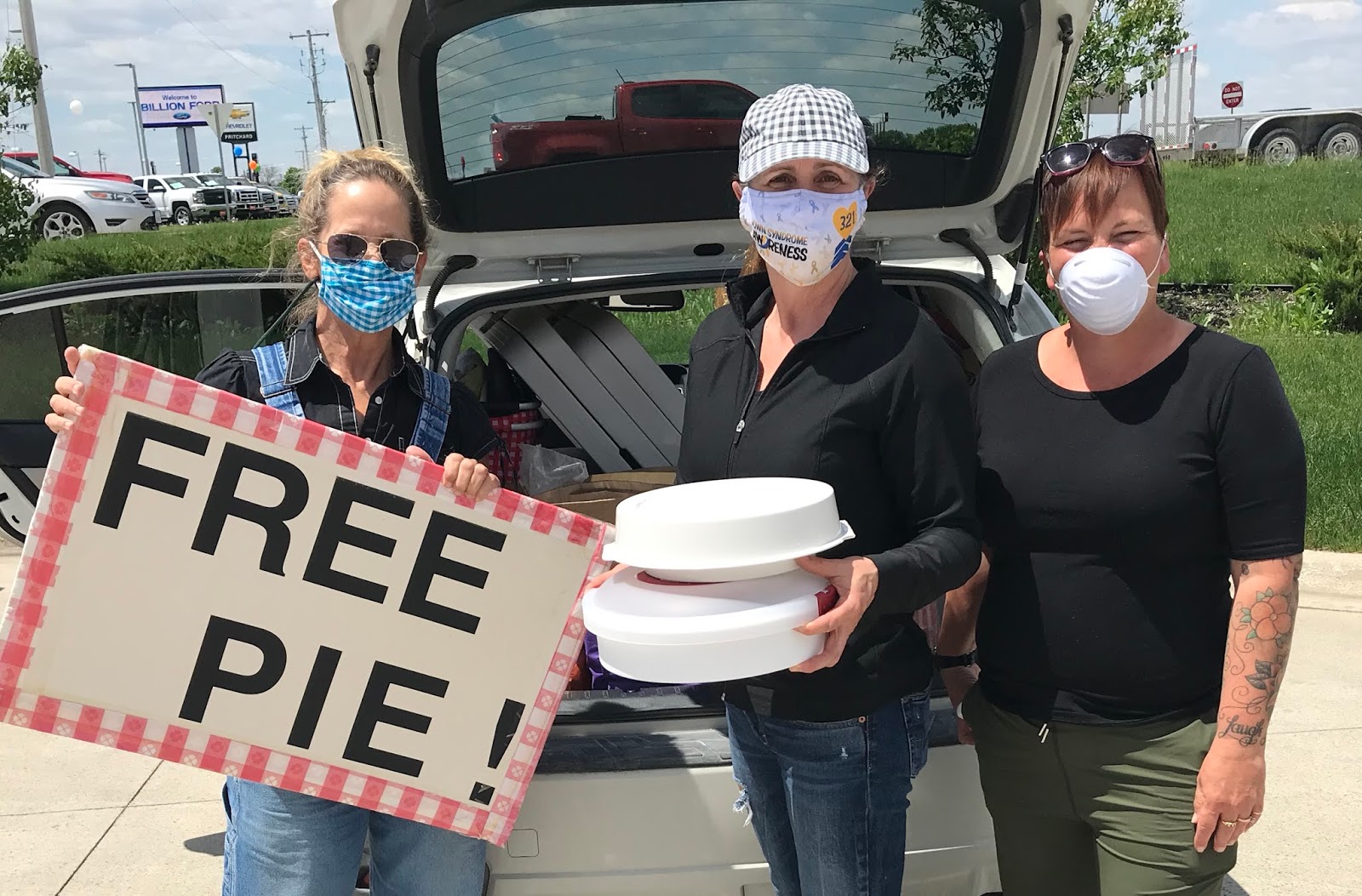 Sarah, a spunky 40-something with a pixie haircut and a sweet smile, strapped on her N-95 mask, tossed her duffle bag in the back, and took over the driving so I could coordinate the pie pickups along our route, arranging roadside meeting times at truck stops.