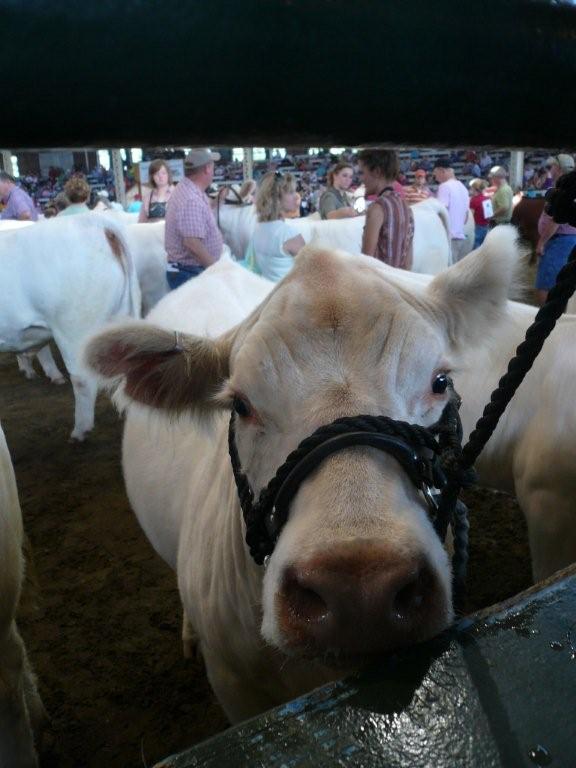 Pie was not the only thing being judged at the Iowa State Fair. In between rounds of pie tasting I wandered over to the cattle barn, a place I clearly had a fascination with since I went there three times and always had a hard time extracting myself from the place. Inside the barn the smell was earthy, the mooing a soothing sound, the place full of life, breath, hay and…yes, manure.