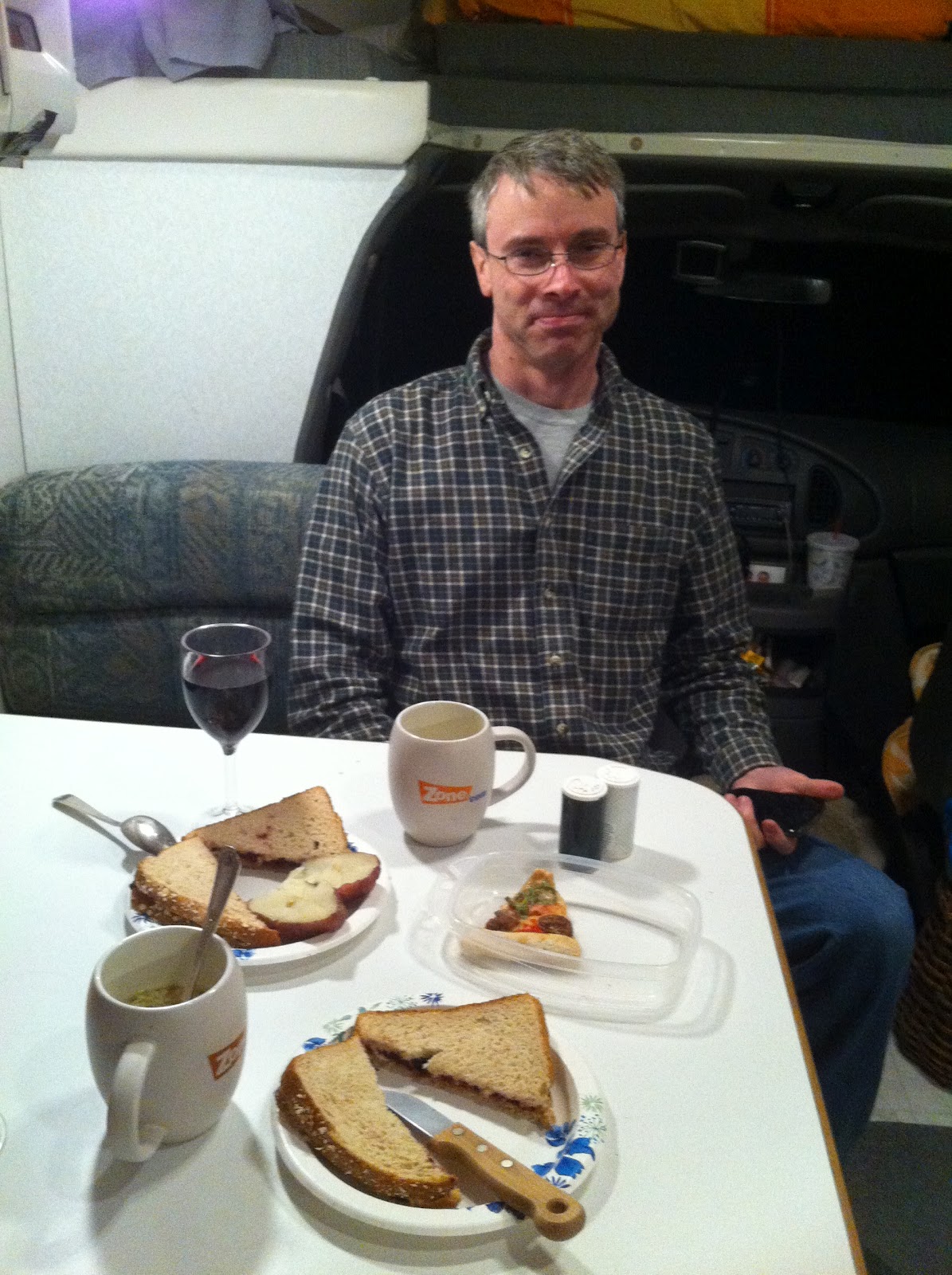 | We made it in the nick of time for my first book event at Pacific Pie Company. The trip should have taken 5 days. We did it in just over three. Phew! |