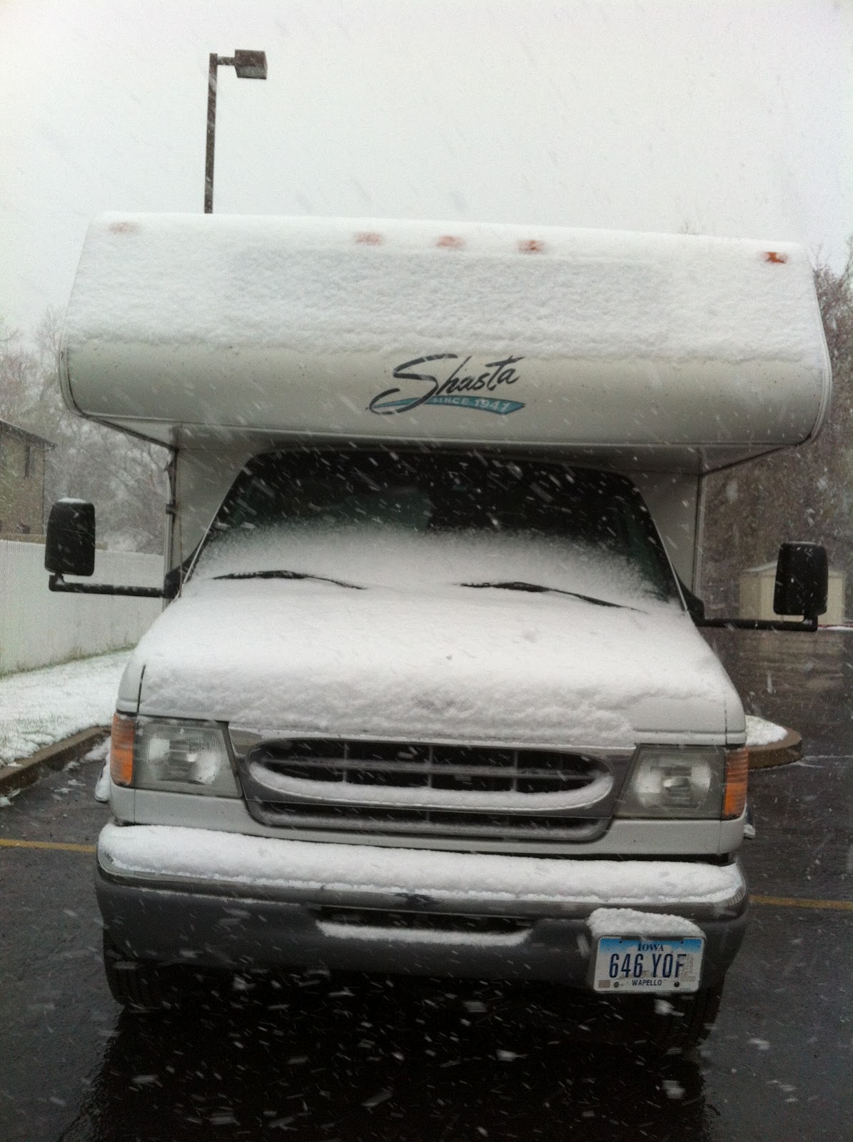 | Woke up to my worst nightmare when we stopped in Ogden, Utah for the night. SNOWSTORM! Thank god it didn’t last more than an hour and the roads stayed clear. |