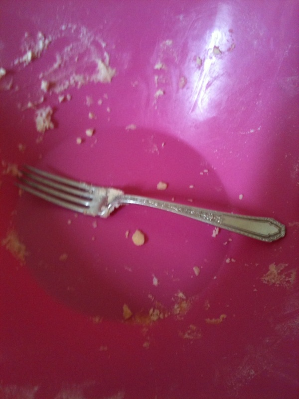 As I was saying….On Sunday, I set up my bowls and pie plates in my “test kitchen” (i.e.: a butcher block island in the middle of my studio apartment). I put on my new (Pillsbury) Love the Pie t-shirt (Doh! 2 sizes too big), cut open the bag of the Stone-Buhr flour (nice soft consistency! Like baby powder), and finally opened the “Pies, Pies, and More Pies” cookbook. Suddenly it was like being back in Sister Katherine’s biology class during Catholic high school (but without the plaid skirt and kneesocks). Akin to torturing me with a textbook, putting a recipe in front of me is just asking me, no BEGGING ME, to break the rules — a skill I perfected during those teen years.Broken Rule #1: The recipe calls for use of a food processor. Yeah? Well, my version of a food processor is my grandmother’s silver fork. So pretty, isn’t it? No electricity is required. And it’s much easier to clean!