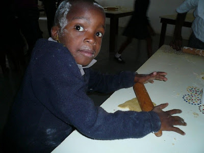 We didn’t have aprons so the kids’ school uniforms were covered in flour by the time we were done. None of the kids complained, but I wonder what their moms said when they got home.