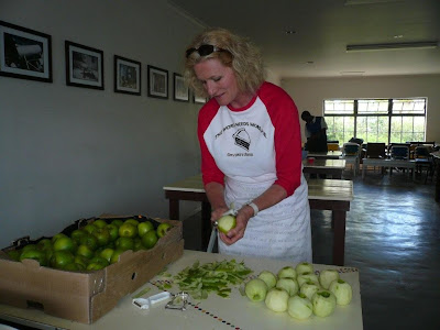 My host (and good friend) Alayne not only helped arrange the class and took me shopping for pie making ingredients, she accompanied me to the class. (She also drove me because I’m still too terrified to drive on the left hand side of the road.) She took initiative and began the long process of peeling 16 kilograms of apples — which is 35 pounds.