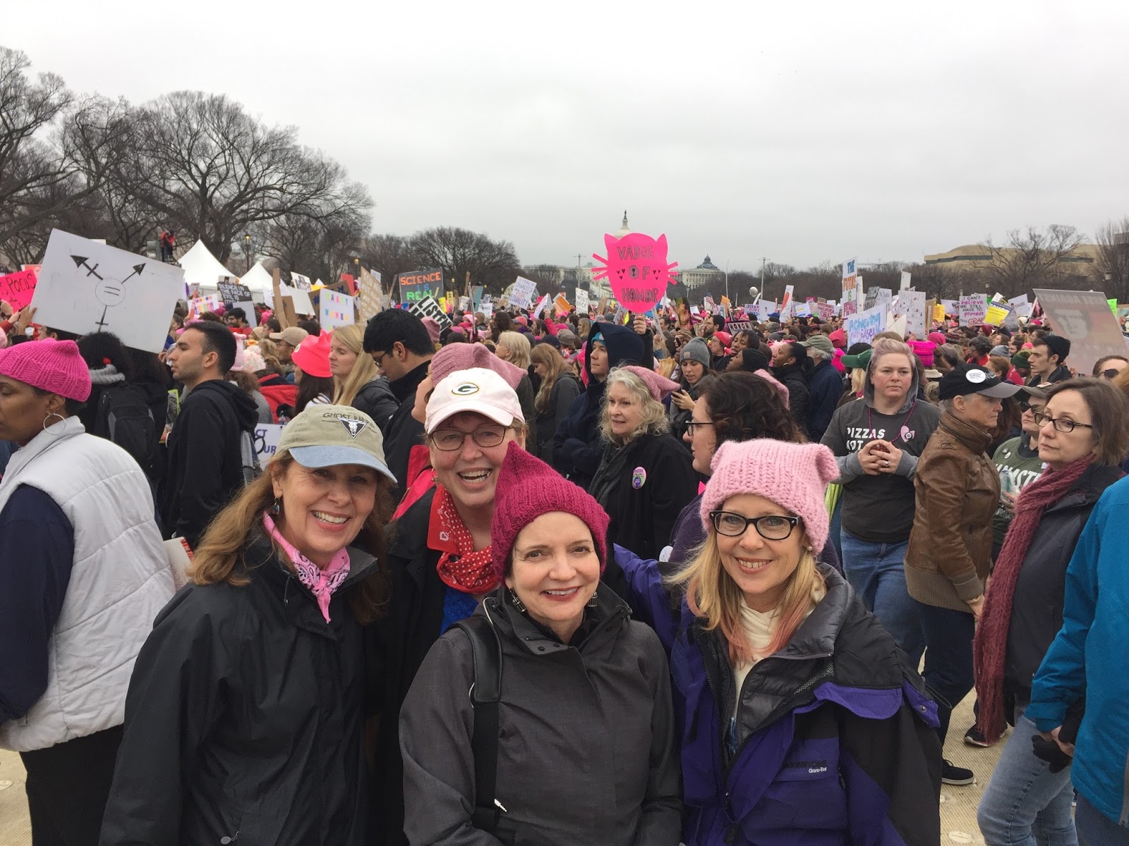 But for that one day, Saturday, January 21, I felt so empowered, so supported, so encouraged by the huge numbers of people who showed up to protest. Organizers were hoping for at least 100,000 in Washington, D.C., but estimates state it was closer to 500,000. We packed the streets so tightly we could barely move our feet. We listened to intelligent, caring people speak as they took their turns on the stage. We chanted and held up our protest signs and wore our pink pussy hats. (Those pink, cat-eared hats filled airplanes, buses and sidewalks leading up to the march, and on the day of the march they created a sea of pink lighting up a cloudy day with vibrant color.) We made friends. We made headlines. We made it known that we are not going to accept this new (and dangerous) administration.