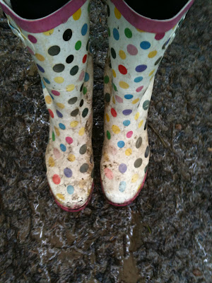 Reassurance, though, costs money. At $125 for a session, this alone is a reason why I don’t make a regular practice of seeing psychics. But sometimes when you’re desperate a few extra bucks can be justified. That’s one tank of gas for the RV. And if I don’t buy that dress I had my eye on…(PHOTO: The psychic was right. The wet ground is communicating with me – right through the hole in the bottom of my left rain boot!)