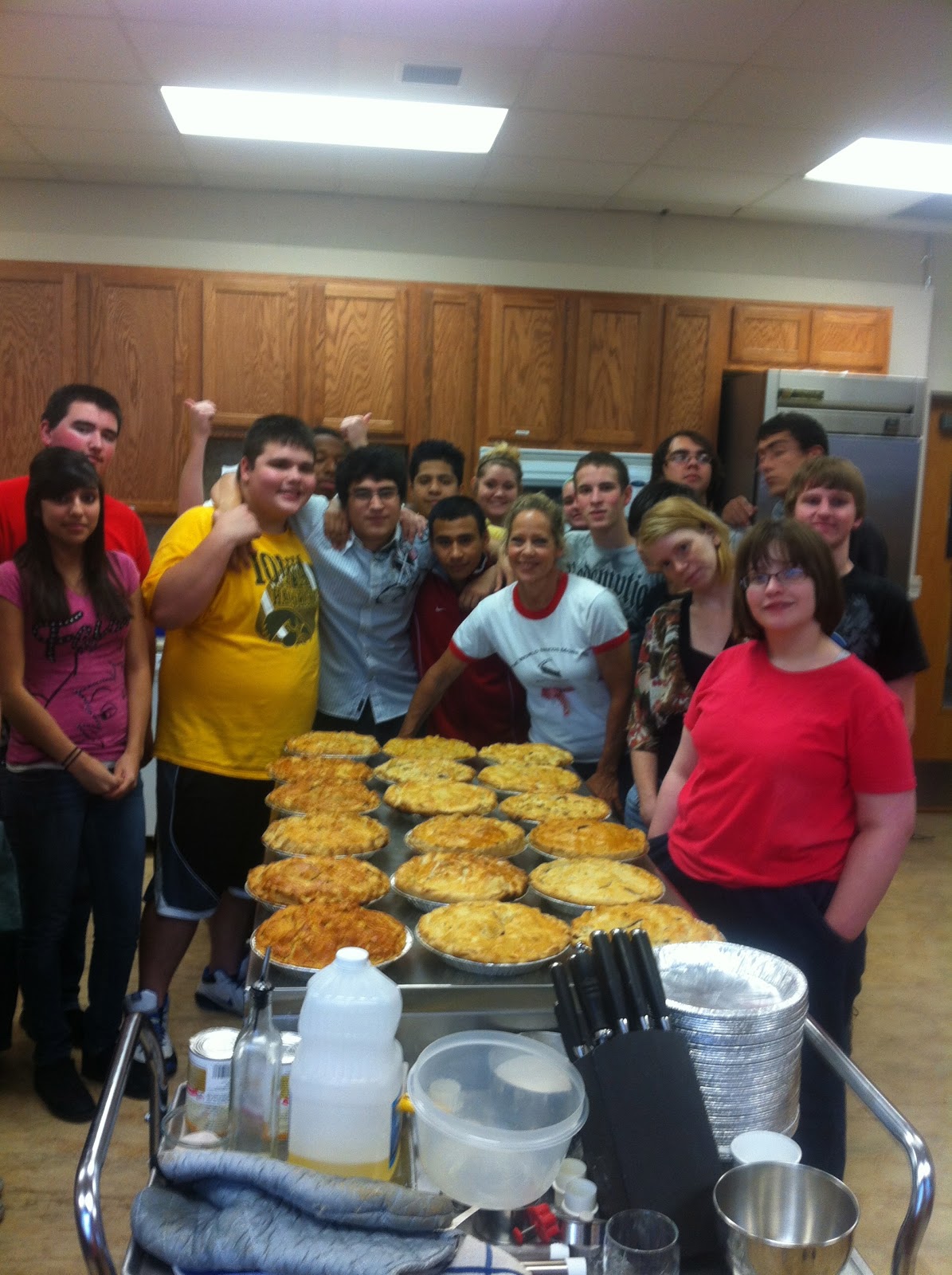 My BFF in Eldon, Patti — or Mizz D, as she is known at work– is a high school English teacher. She uses my blog to get her students interested in reading, and as a bonus, they get a pie class taught by me at their school. (I love those Home Ec rooms — all that counter space and five ovens.) Here’s the story of my first class I did with her students: Click here to read.